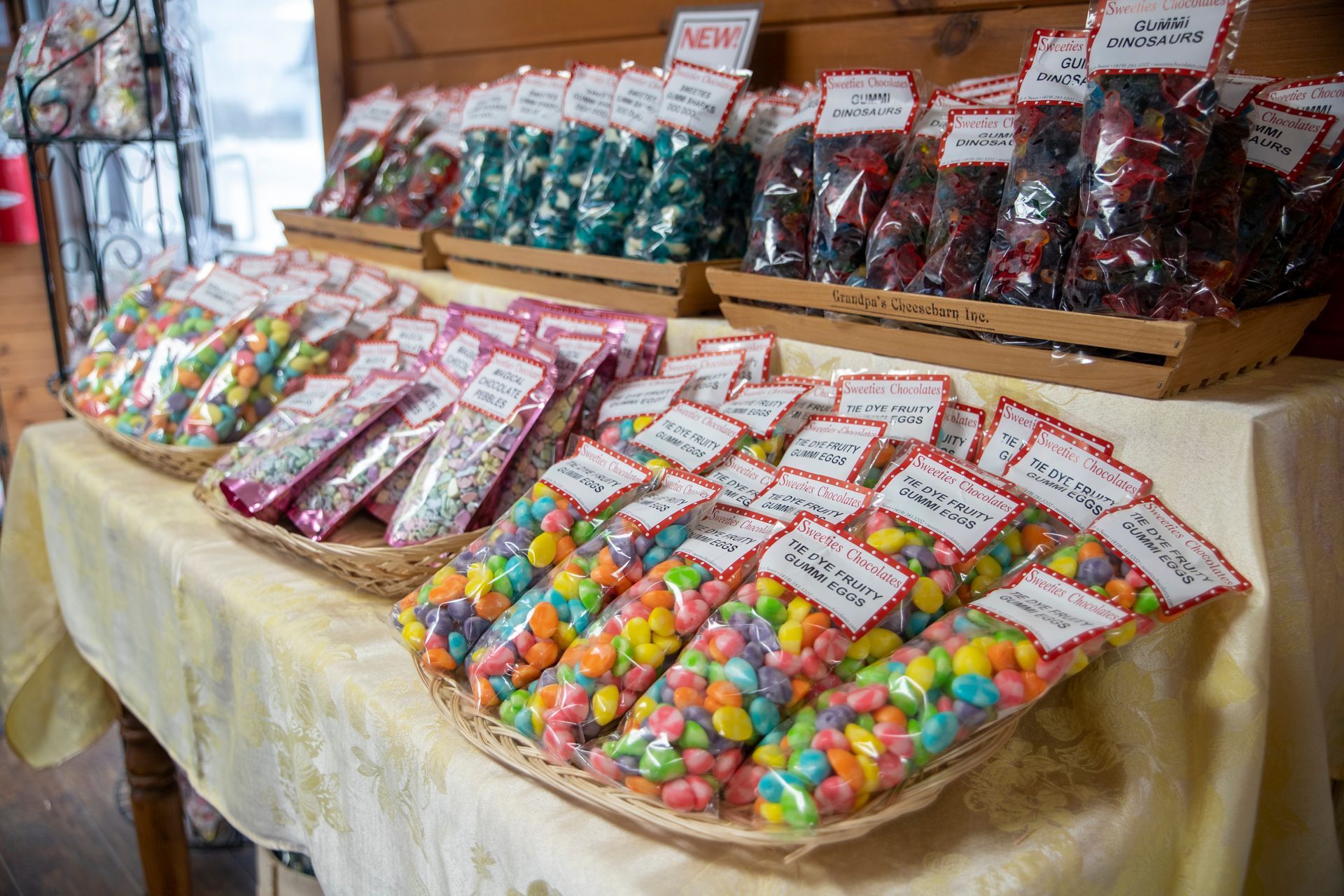Homemade in our store every week, our Sweeties chocolates and fudge are offered in heavenly varieties that are sure to delight any chocolate lover! Even the caramel, peanut butter and maple creams used inside the candies are homemade with Grandma’s secret recipes.